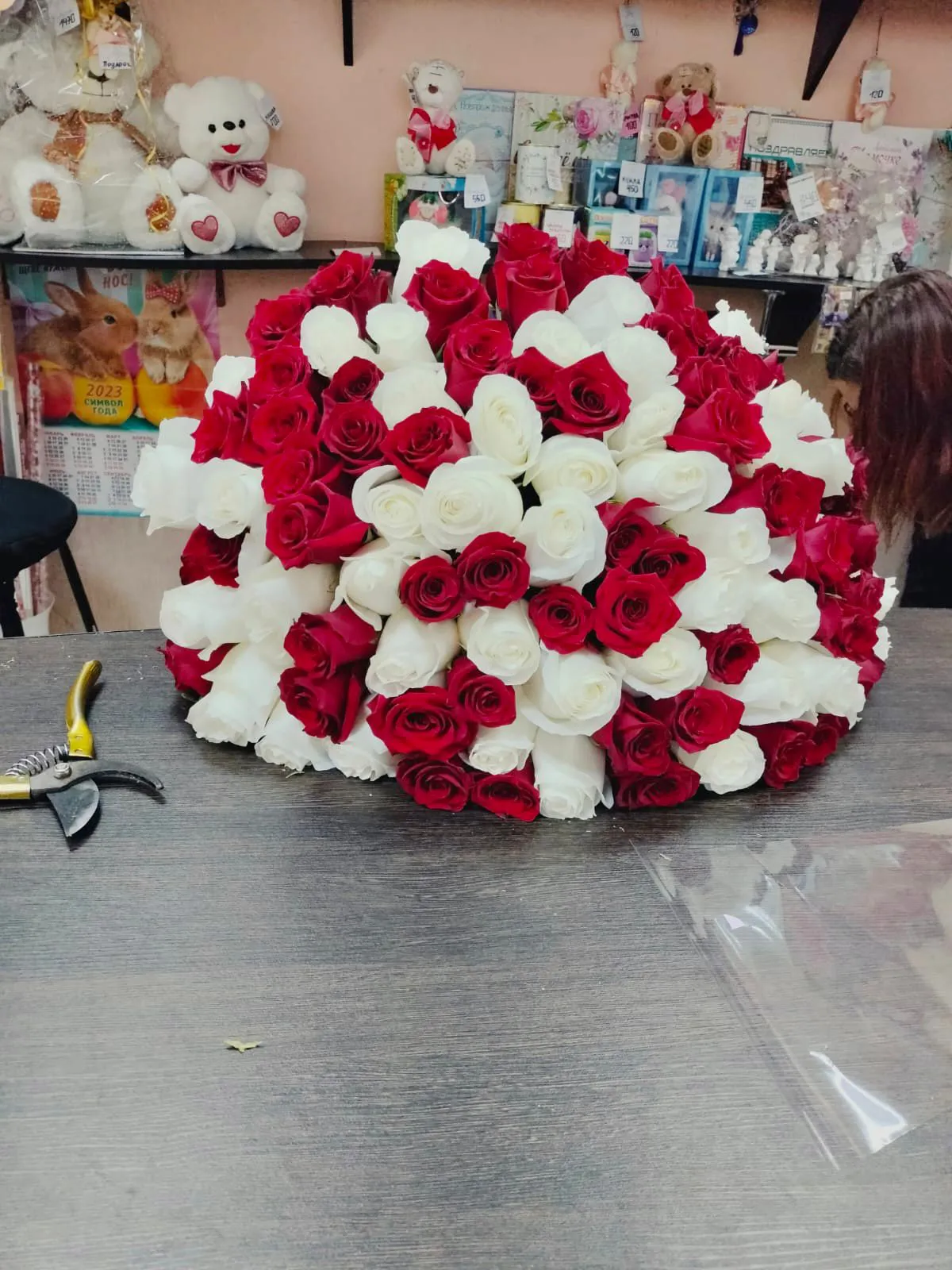 Cостав данной композиции может незначительно поменяться, из-за отсутствия некоторых позиций или сезонности цветов.