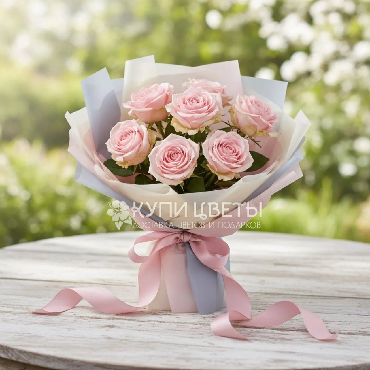 Нежное признание в любви: Букет из 7 розовых роз в изысканной упаковке