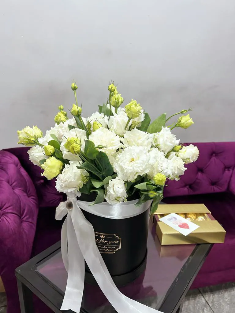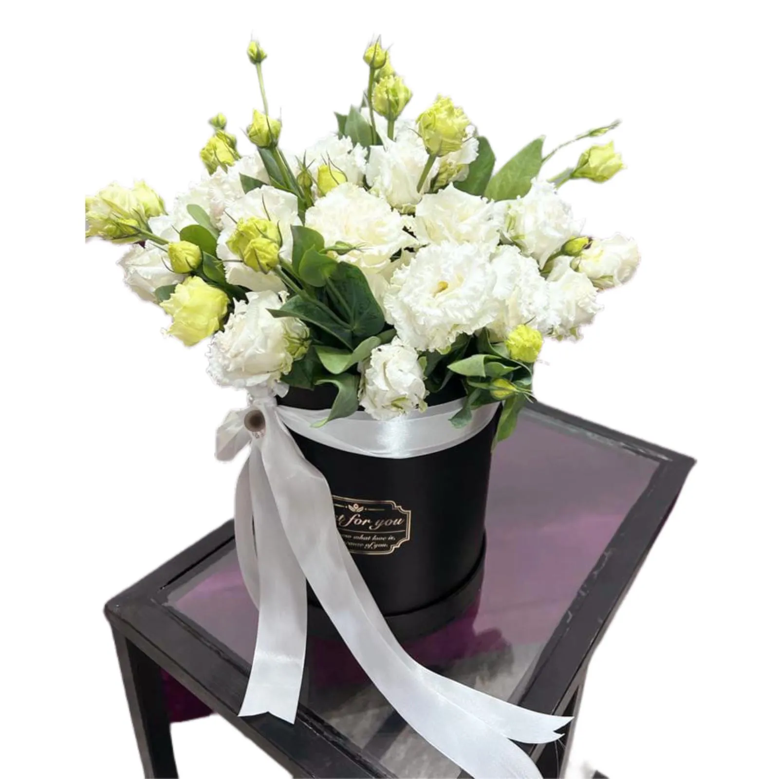 Белая эустома в стильной, оригинальной коробке понравится каждому !