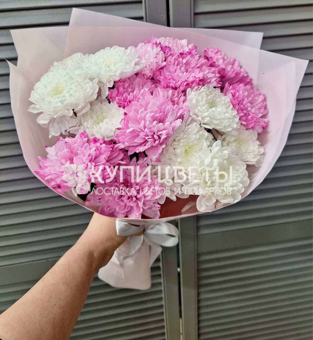 Кустовые хризантемы,упаковка,лента |