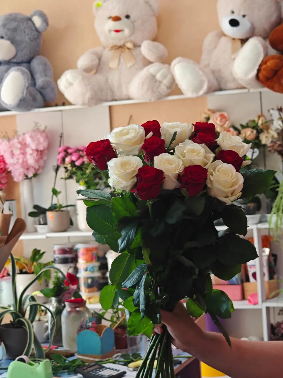 Классическое сочетание красных и белых роз под ленту выглядит очень ярко, стильно и привлекательно. Такое сочетание цветов всегда в моде. Если вы не можете выразить чувства словами, в этом вам всегда помогут цветы.