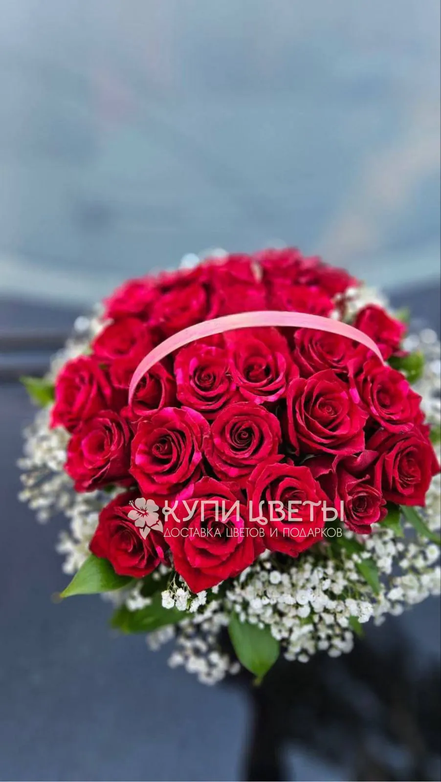 Когда слова не могут выразить всю полноту чувств, позвольте этому романтическому букету говорить за вас! Корзина из 25 алых роз, обрамленная нежным кружевом гипсофилы, – это воплощение искренней любви, романтики и признания. Каждый лепесток красной розы говорит о вашей страсти, а легкие веточки гипсофилы – о хрупкости и чистоте момента. Это прекрасный подарок, который создаст атмосферу счастья и незабываемой романтики.