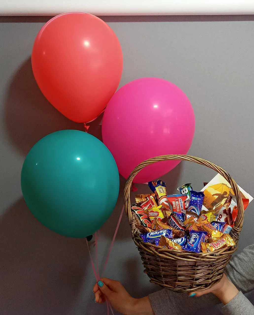 Корзина с шоколадными батончиками (Twix, Kit Kat, Snikers, Milki Way и др.)