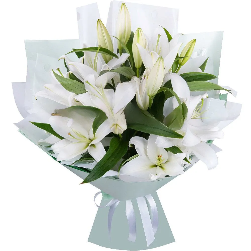 Превратите момент волшебства с помощью наших удивительных лилий. Пусть эта красота наполнит дом или офис вашего близкого человека, напоминая о вашей заботе и внимании каждый день. Каждая изящная лилия в нашем букете выращена с любовью и заботой, чтобы принести радость и восторг своему получателю. Лилии - это не просто цветы, это проявление изысканной красоты и утонченного вкуса, которые они приносят в любое помещение.