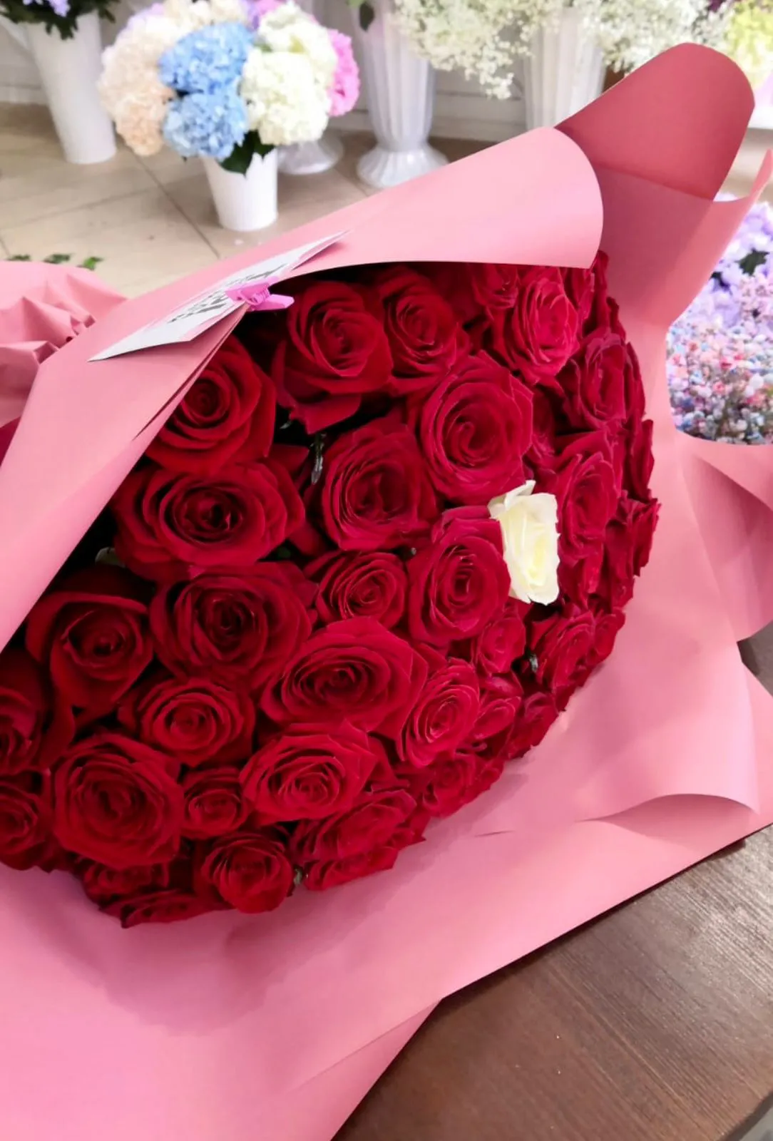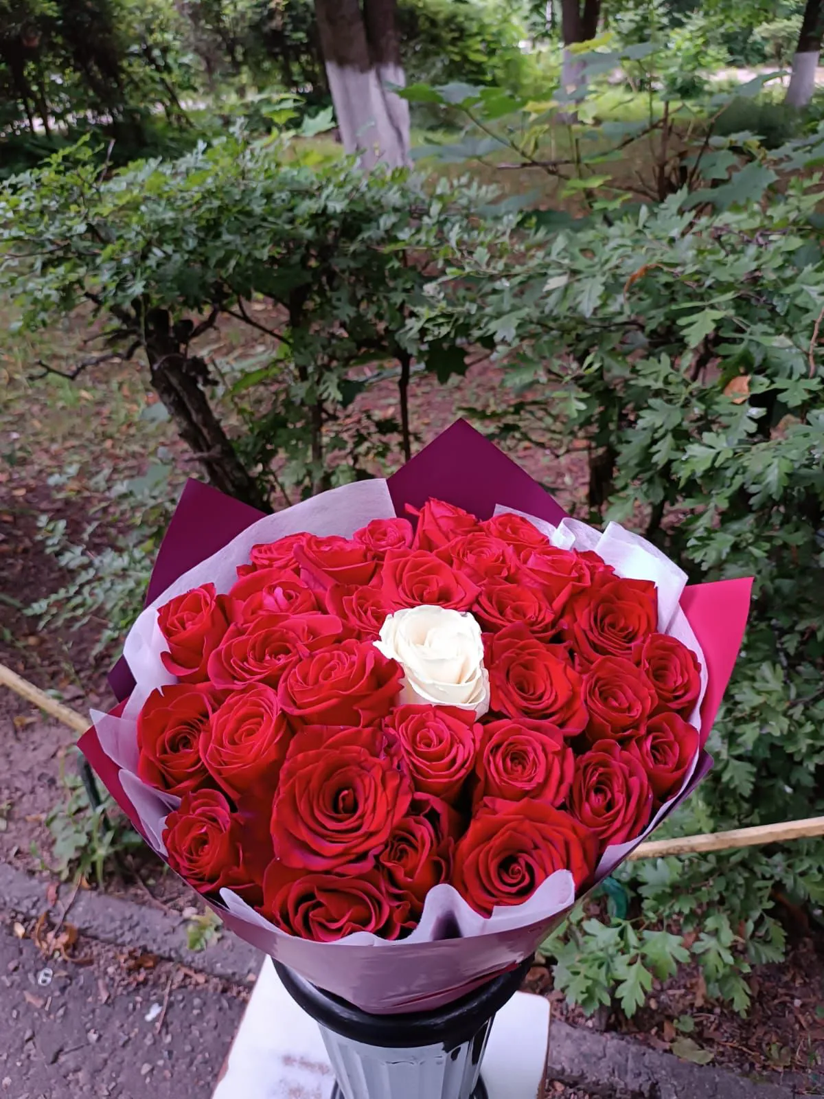 Букет "Моя единственная" произведет фурор !Любимая девушка или члены семьи, безусловно, оценят все великолепие огромного количества красивых красных роз. Красный цвет всегда считался символом любви и страсти.