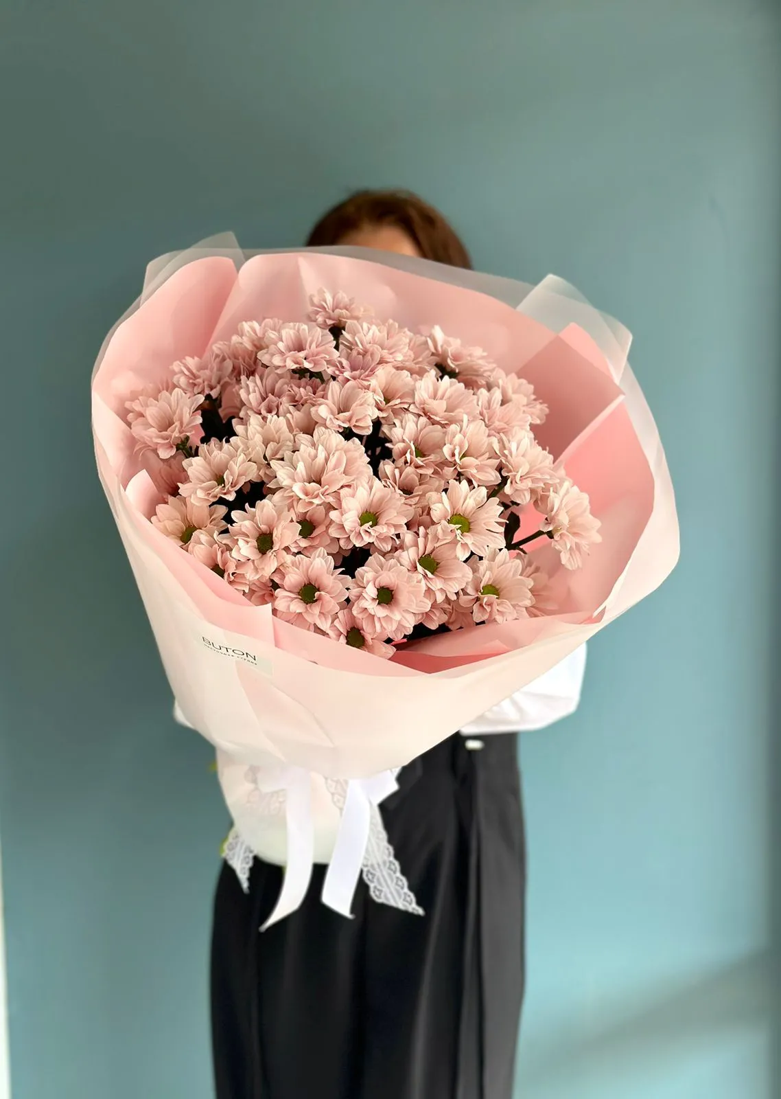 Ромашковая хризантема, упаковка, лента |