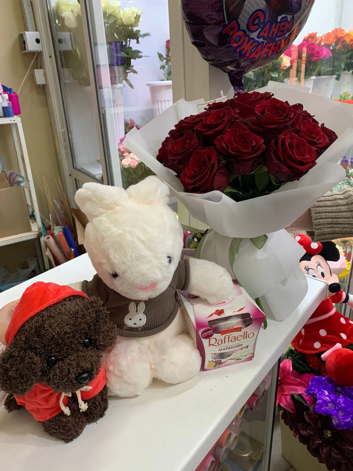 - Премиум - 25 роз, игрушка, Раффаэлло 150 гр.
