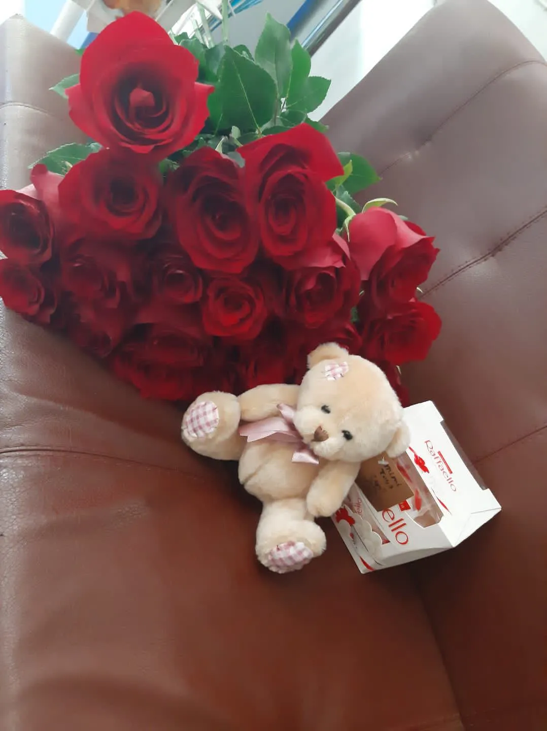 - Средний - 15 роз, игрушка, Раффаэлло 150 гр.