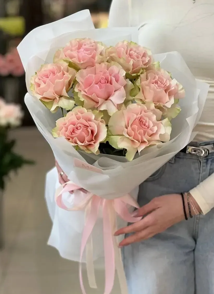 Изысканный букет из розовой французской розы - воплощение утончённой романтики и природной элегантности.