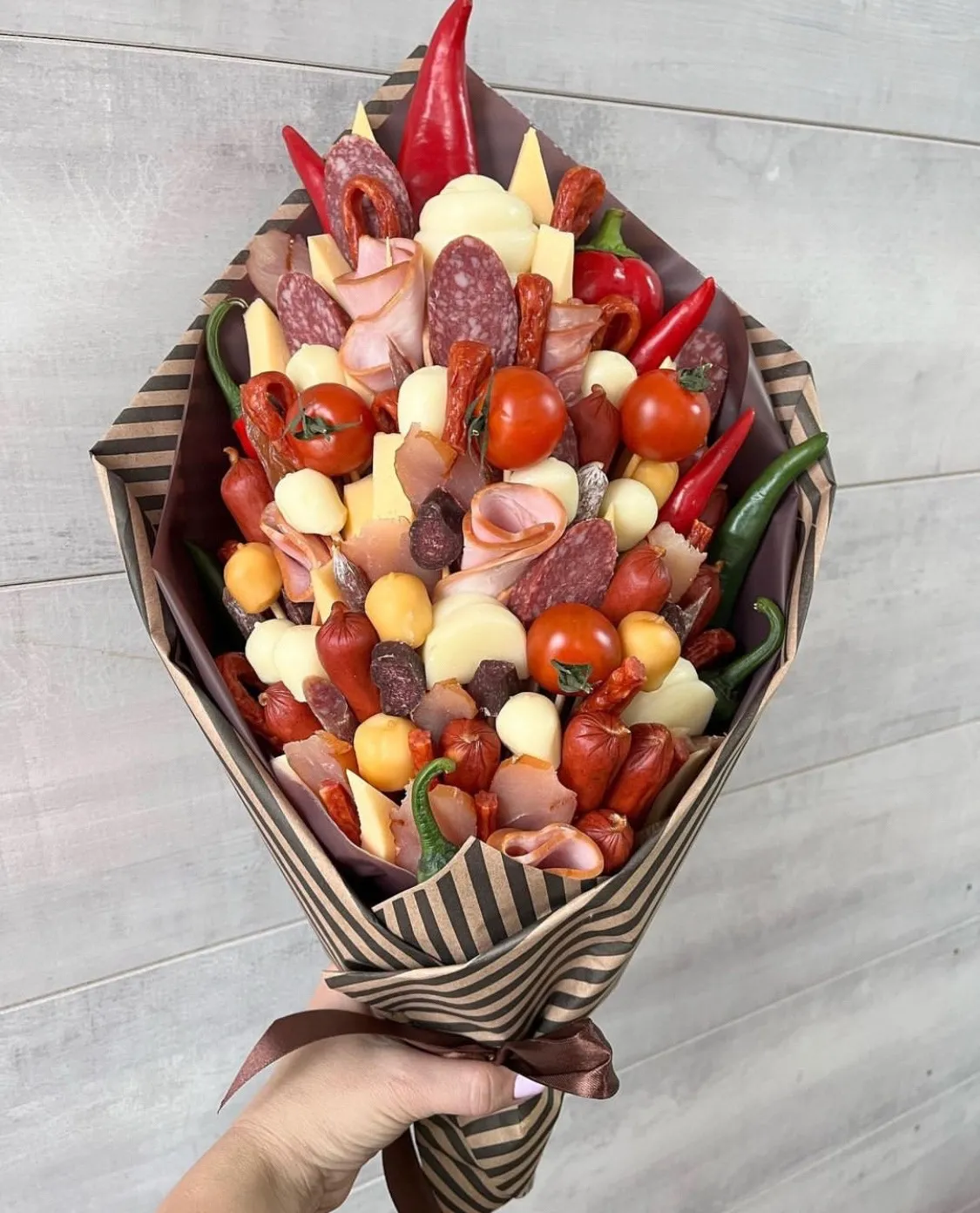 Каждый съедобный букет выполняется индивидуально, поэтому возможно отличие от фото, но стилистика остается неизменной.