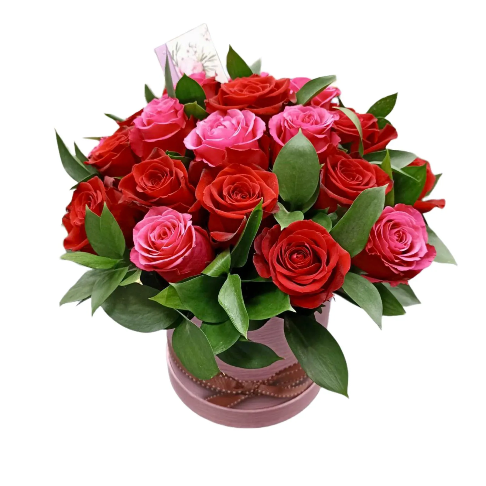 Вариант—Стандарт - роза - 11 шт.,зелень, оазис, шляпная коробка