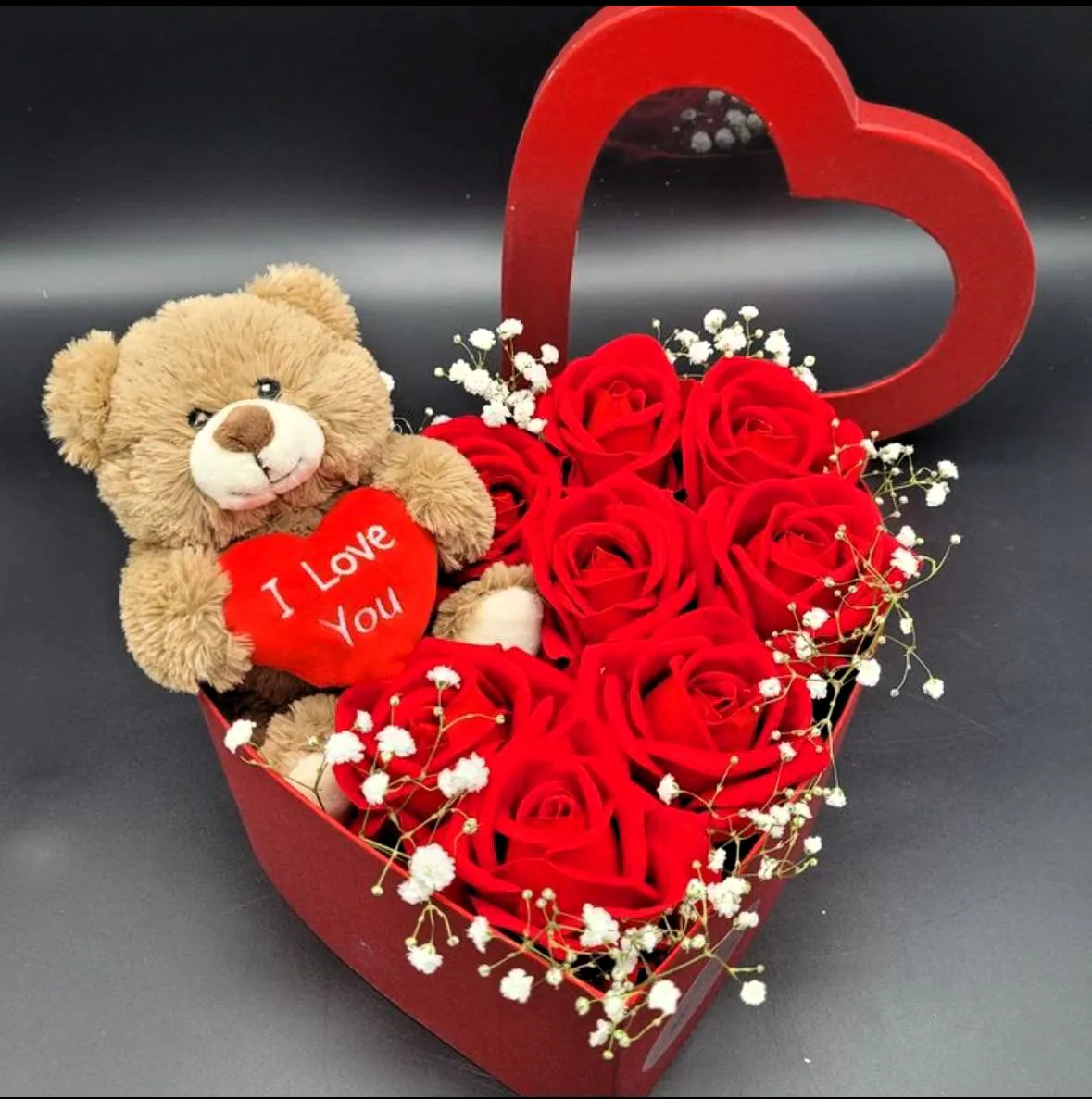 Шляпная коробка с розами и игрушкой – идеальный подарок для любого повода! Эта изысканная композиция сочетает в себе аромат свежих цветов и милую мягкую игрушку, что делает её универсальным выбором для поздравлений.